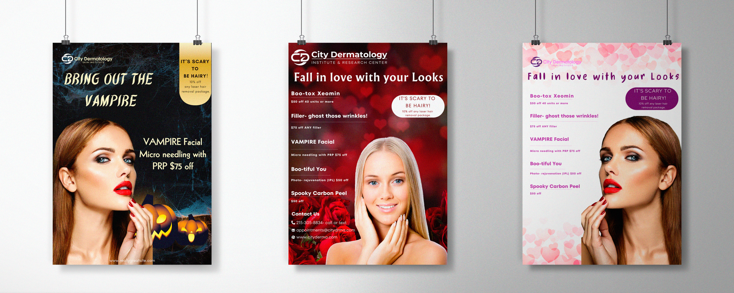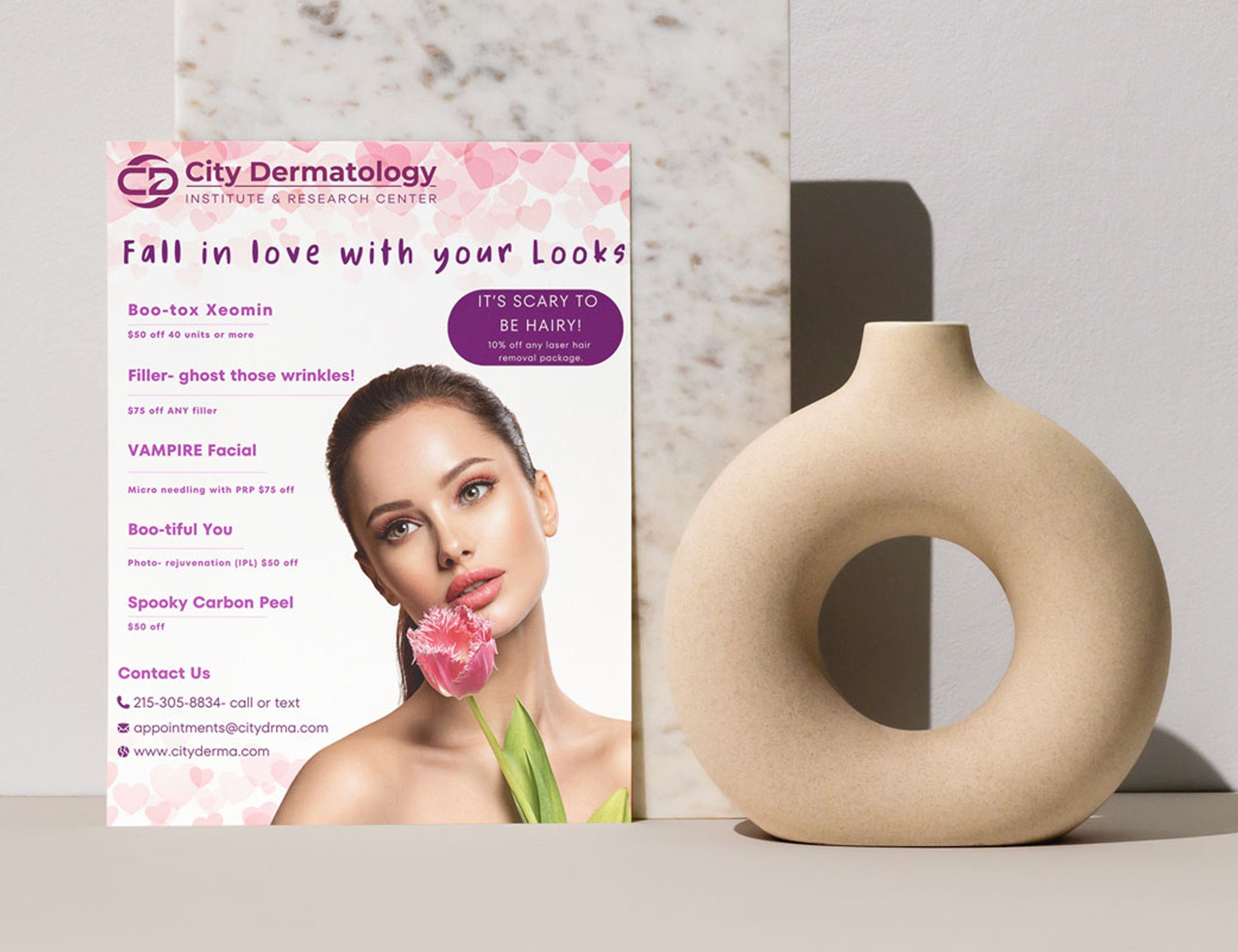 By combining compelling visual storytelling with strategic layout and a sophisticated design language, the promotional series gave City Dermatology a clear edge. The visuals not only captured attention but also reinforced the clinic’s professional image, resulting in materials that resonated deeply with clients and elevated the in-clinic experience.