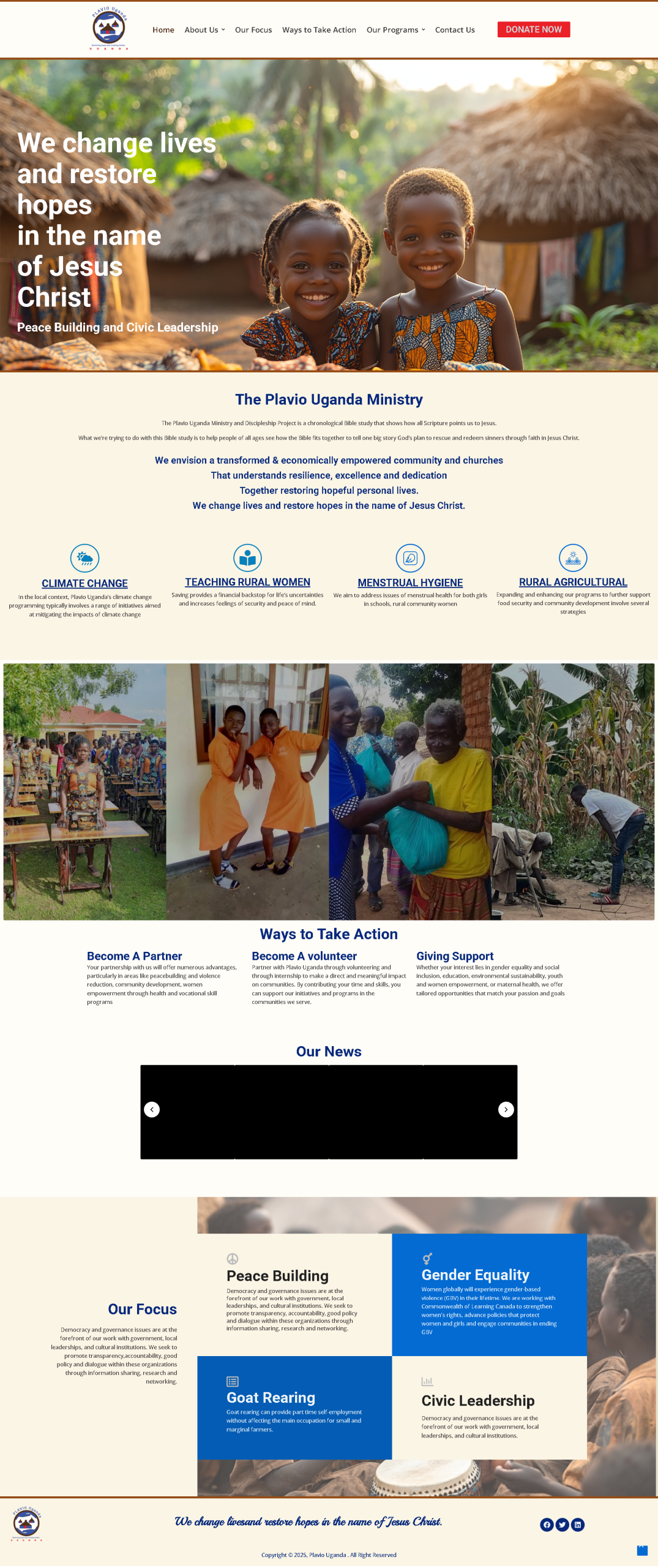 Plavio Uganda is a Christian NGO based in Lira City, Uganda, dedicated to transforming lives through spiritual growth, education, economic empowerment, gender equality, climate resilience, and community development. With programs that span everything from vocational training for women to psychosocial support for the elderly and discipleship projects grounded in storytelling, Plavio’s work impacts thousands across Northern Uganda.